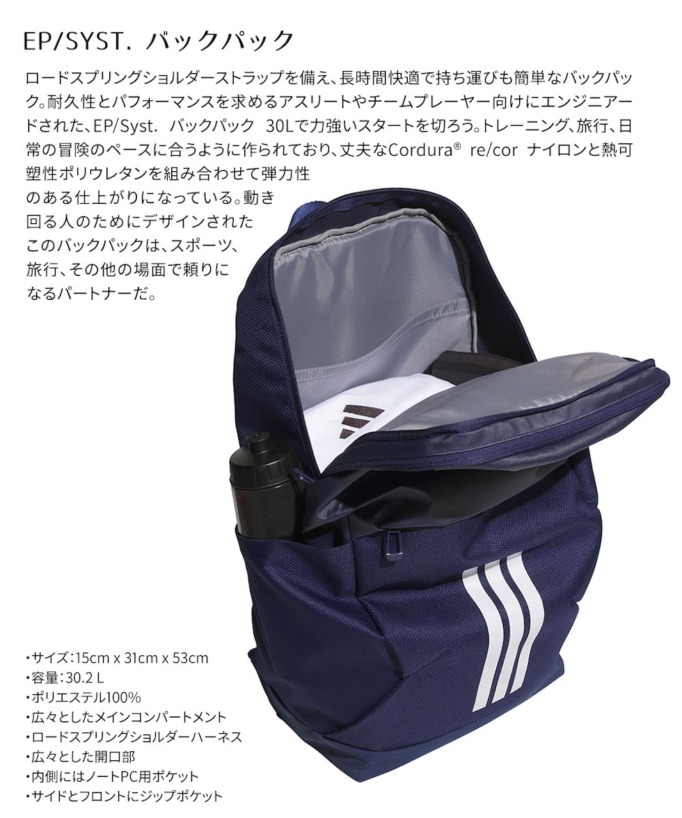 アディダス EP Syst. バックパック 30L リュック ユニセックス 大容量 軽量 撥水仕様 黒 A4対応 PC収納 adidas HM227