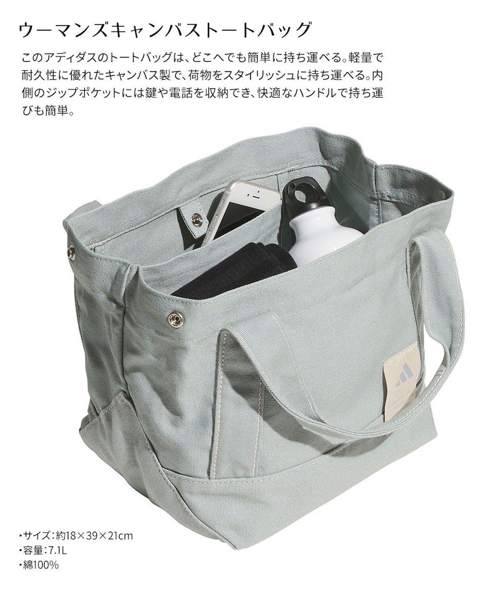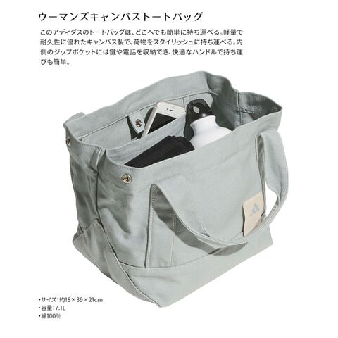アディダス ウィメンズ 鞄 キャンバストート キャンバス素材 A4対応 カジュアル 手提げバッグ ブランド ロゴ入り シンプル 帆布 緑 adidas