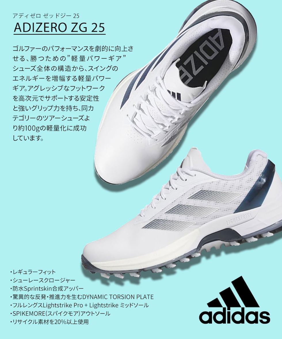 アディダス ゴルフシューズ メンズ 防水 靴 スパイクレス グリップ adidas アディゼロ ゼッドジー25 NLC98 IE3530 IE3532