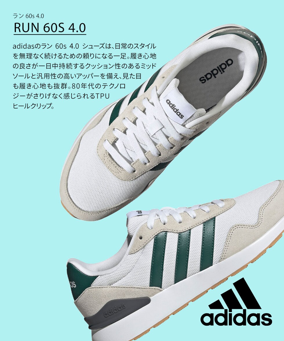 adidas RUN 60s 4.0 メンズ スニーカー クラシック ランスタイル カジュアルシューズ 紐靴 JR6622 JR6623 JS1001