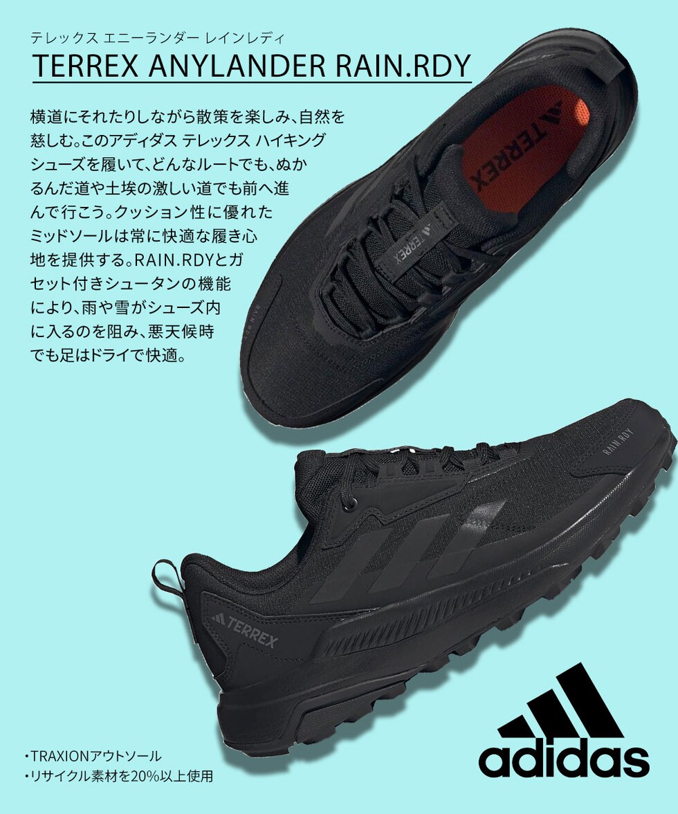 アディダス メンズ 防水 アウトドアシューズ ハイキング 黒 グレー テレックス Terrex Anylander Rain.Rdy Hiking