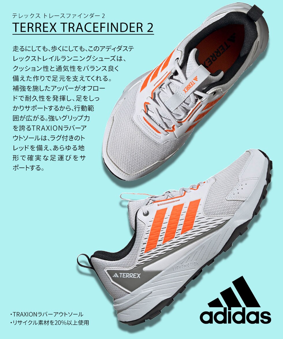 アディダス トレイルランニングシューズ メンズ ローカット 紳士 靴 登山 ブラック 黒 グレー テレックス TERREX TRACEFINDER 2