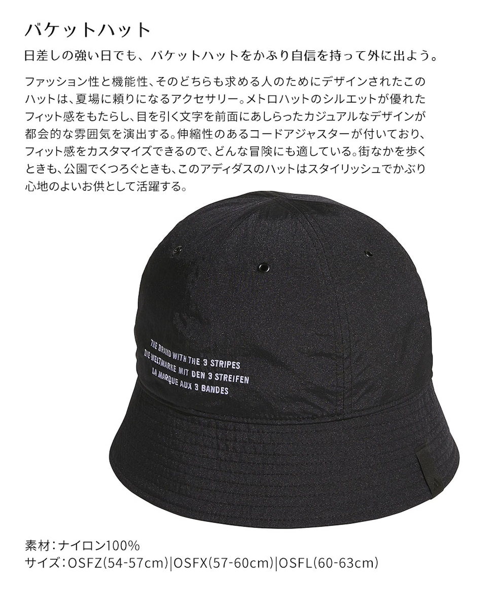 アディダス バケットハット 帽子 男女兼用 カジュアル ロゴ入り 紫外線対策 日よけ アウトドア フェス 旅行用 シンプル ストリート adidas