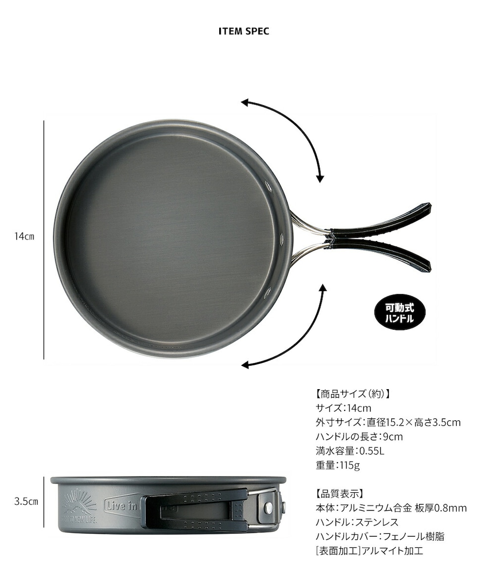 フライパン アルミ製 キャンプ アウトドア バーベキュー 軽量 直径14cm 可動式ハンドル キャンプめし アルミフライパン 小さめ 可動式ハンドル 軽い キャンプ飯 クッカー 一人用 ソロキャンプ 登山 おしゃれ アウトドアグッズ キャンプ用品 コンパクト AFP15