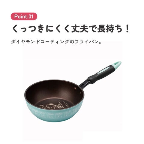 フライパン IH対応 深型 20cm ダイヤモンドコーティング 調理器具 ガス キャラクター ミッキー キティ スヌーピー レッド ブルー AFP20