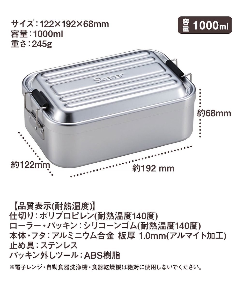 本体・フタ:アルミニウム合金 板厚 1.0mm(アルマイト加工)