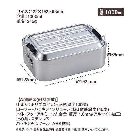 アルミ 深型 ランチボックス 弁当箱 1000ml 1段 軽量 ドーム型 パッキン付き 仕切り付き 大きめ 大容量 シンプル シルバー AFTD10のレビュー