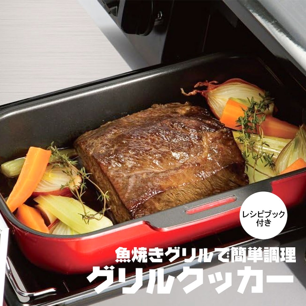 グリルパン 1L クッカー 蓋 ハンドル付き トレー 魚焼き チキン ステーキ 簡単 美味しい 料理 レシピ付 時短 調理器具 AGRC10