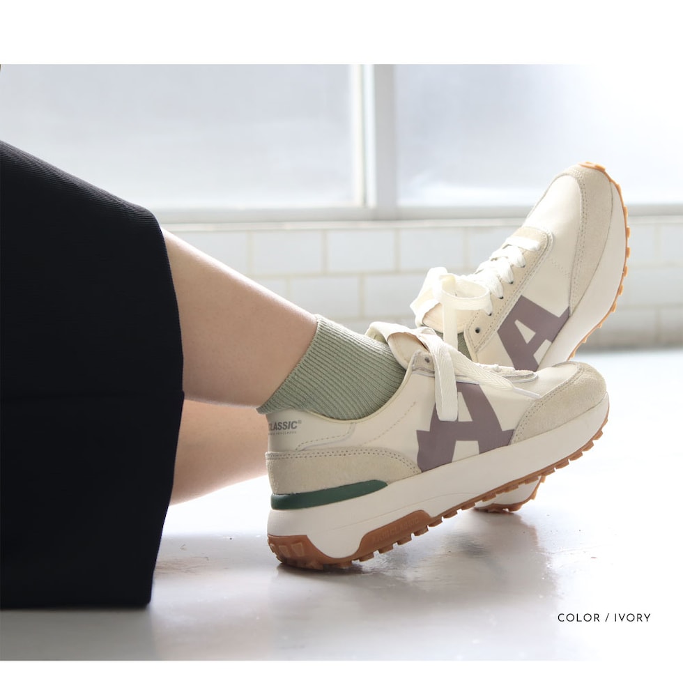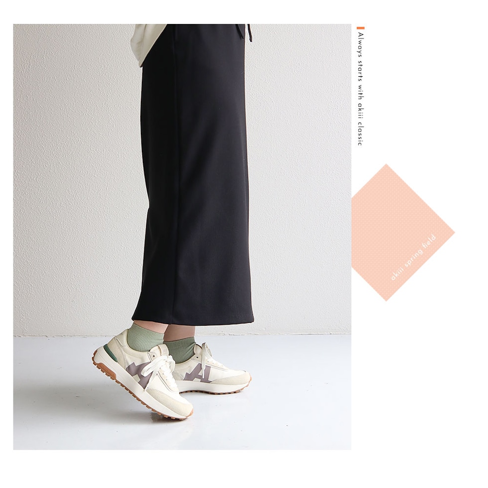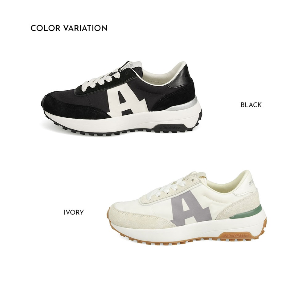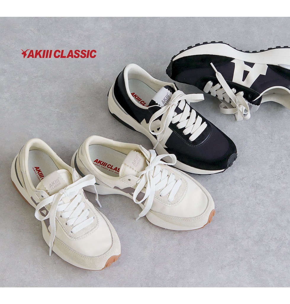クラシックスタイルの厚底ランニングシューズながら、アキクラシックらしいトレンド感のあるカラーで仕上げたモデル。