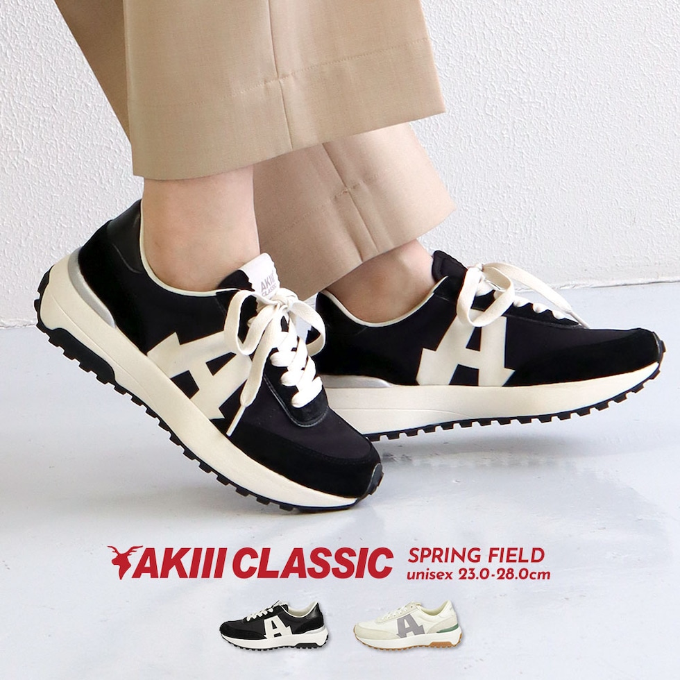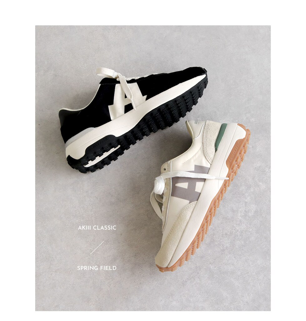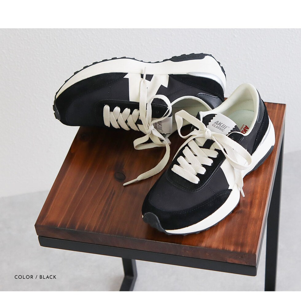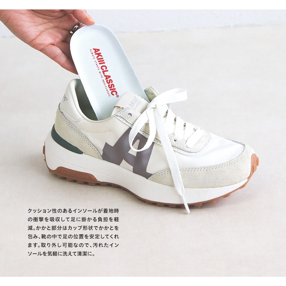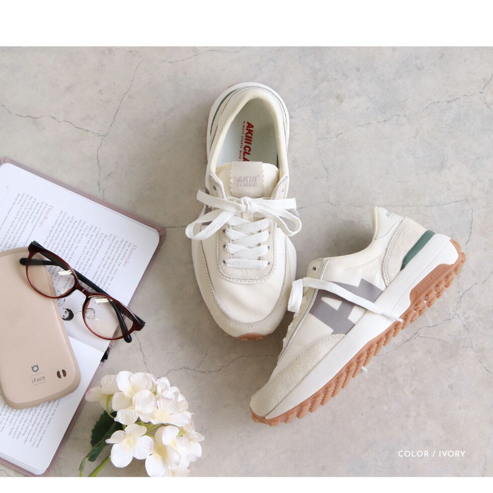 クラシックスタイルの厚底ランニングシューズながら、アキクラシックらしいトレンド感のあるカラーで仕上げたモデル。