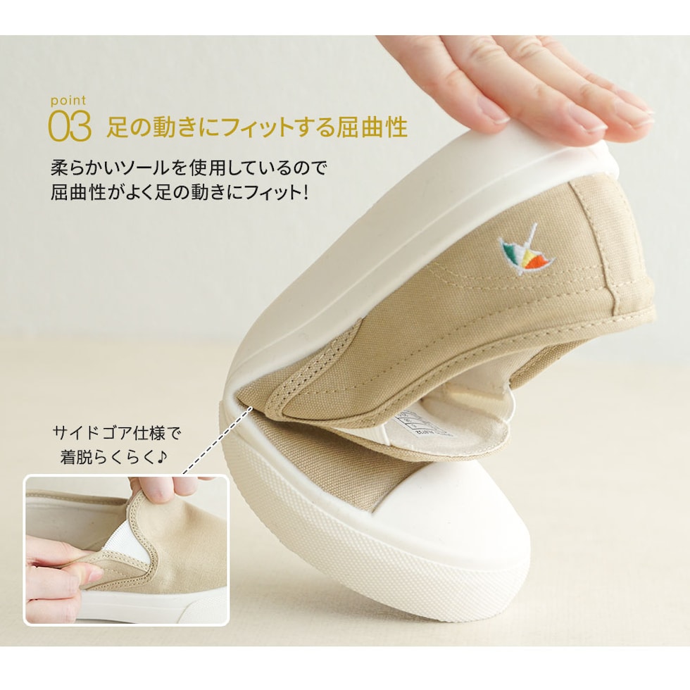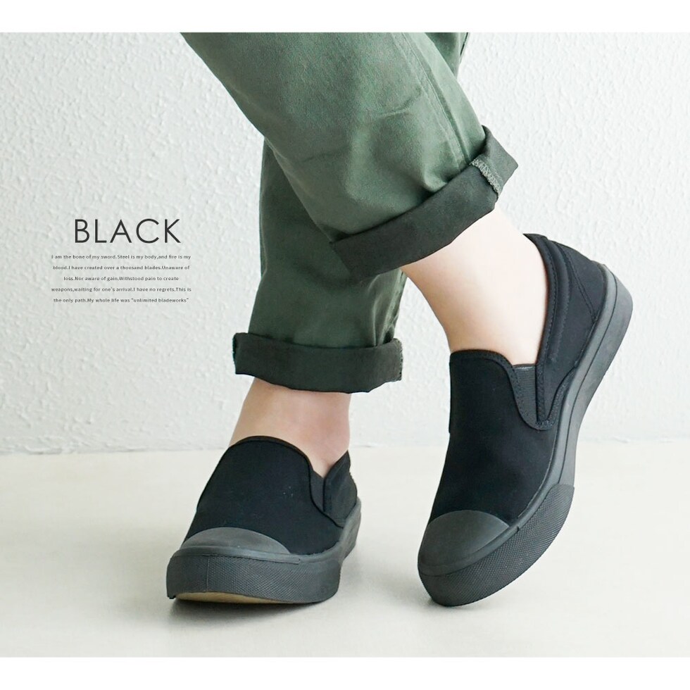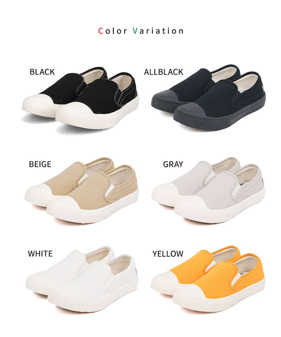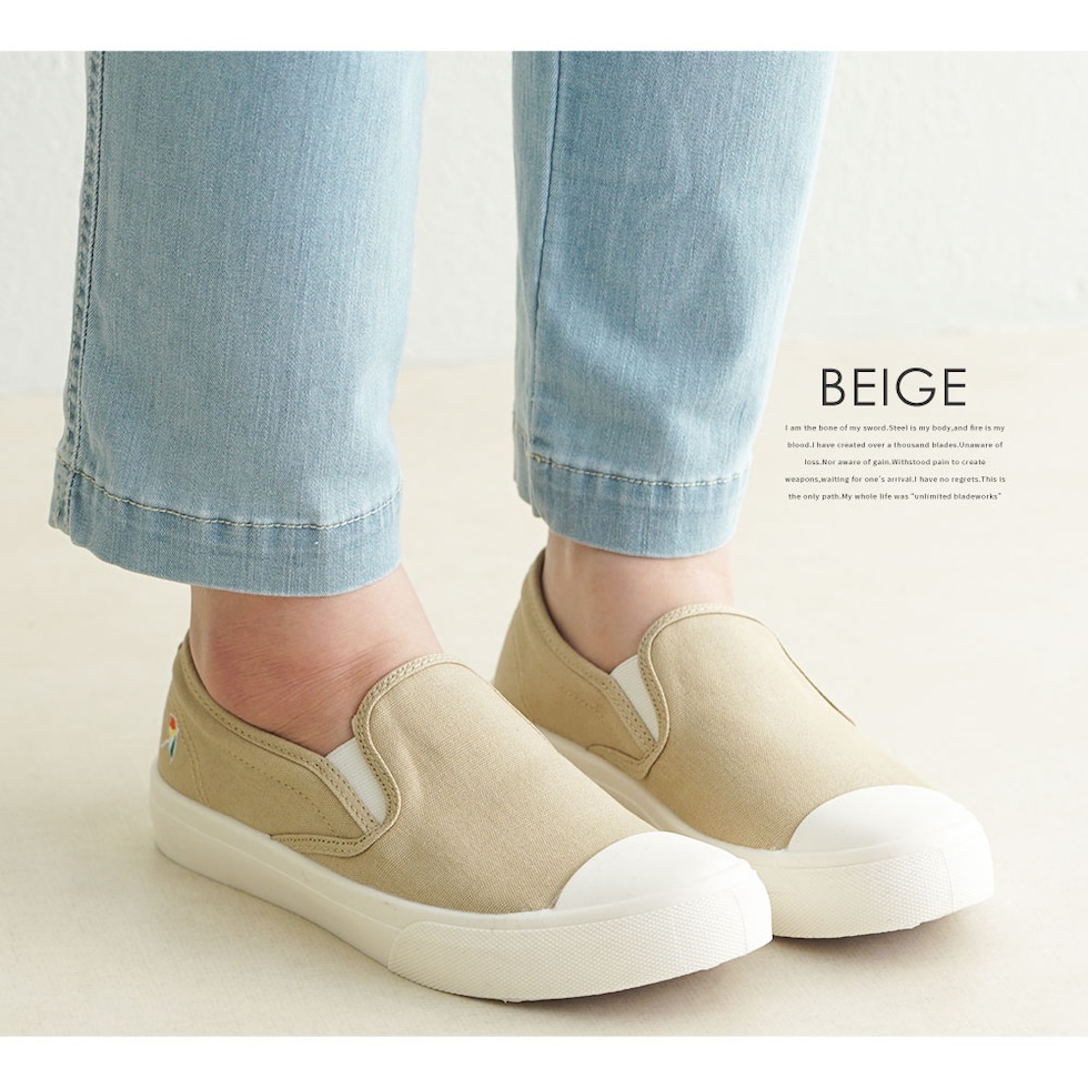 定番キャンバス素材のシンプルで飽きの来ないデザインのスリッポン。