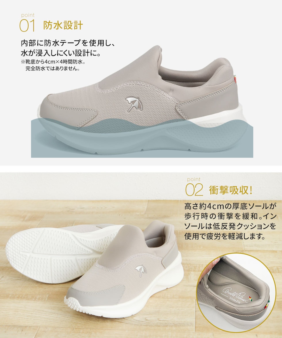 日本初の特許取得「ハンズフリーシューズ」として、ストレスフリーで快適なスライドフィットシリーズ。