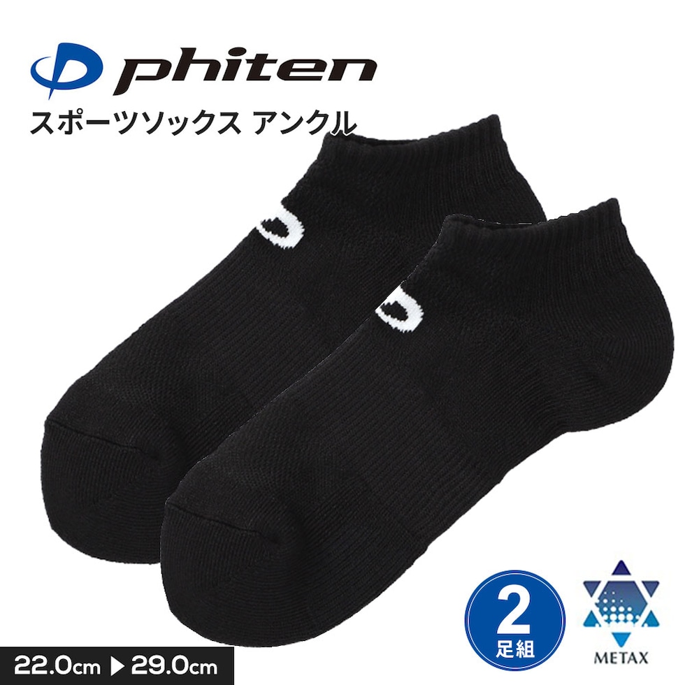 スポーツソックス くるぶし アンクル スニーカーソックス ランニング 靴下 通気性 衝撃吸収 ワイドヒール 丸つま先 黒 phiten ファイテン