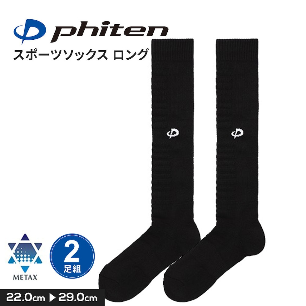 スポーツ ハイソックス ロング丈 ランニング 靴下 通気性 衝撃吸収 アーチサポート ワイドヒール phiten ファイテン 丸つま先 ロング 2足組
