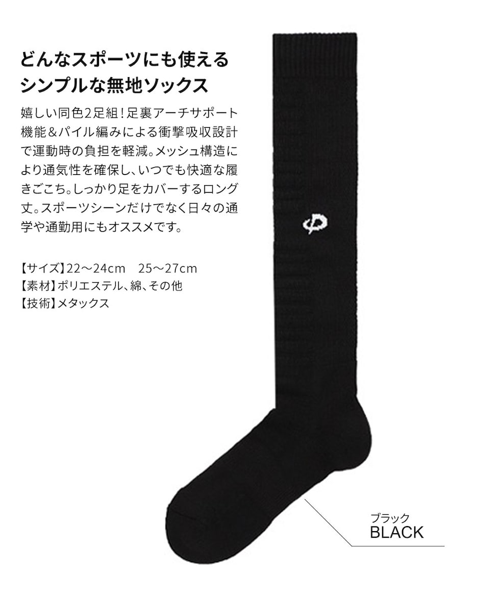■スポーツソックス 丸つま先 ロング(2足組)