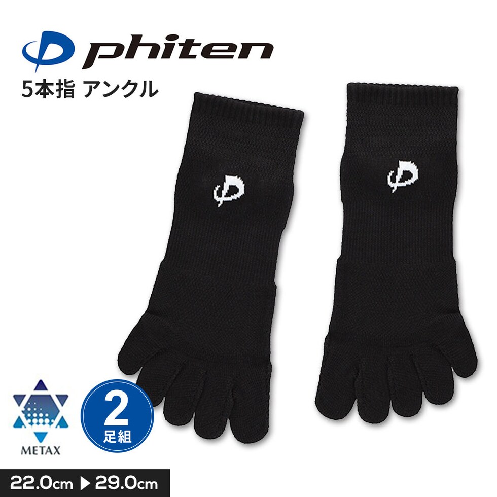 ファイテン スポーツ ソックス ショート丈 メンズ レディース 靴下 運動 男性用 女性用 黒 ブラック 5本指 アンクル 2足組 phiten