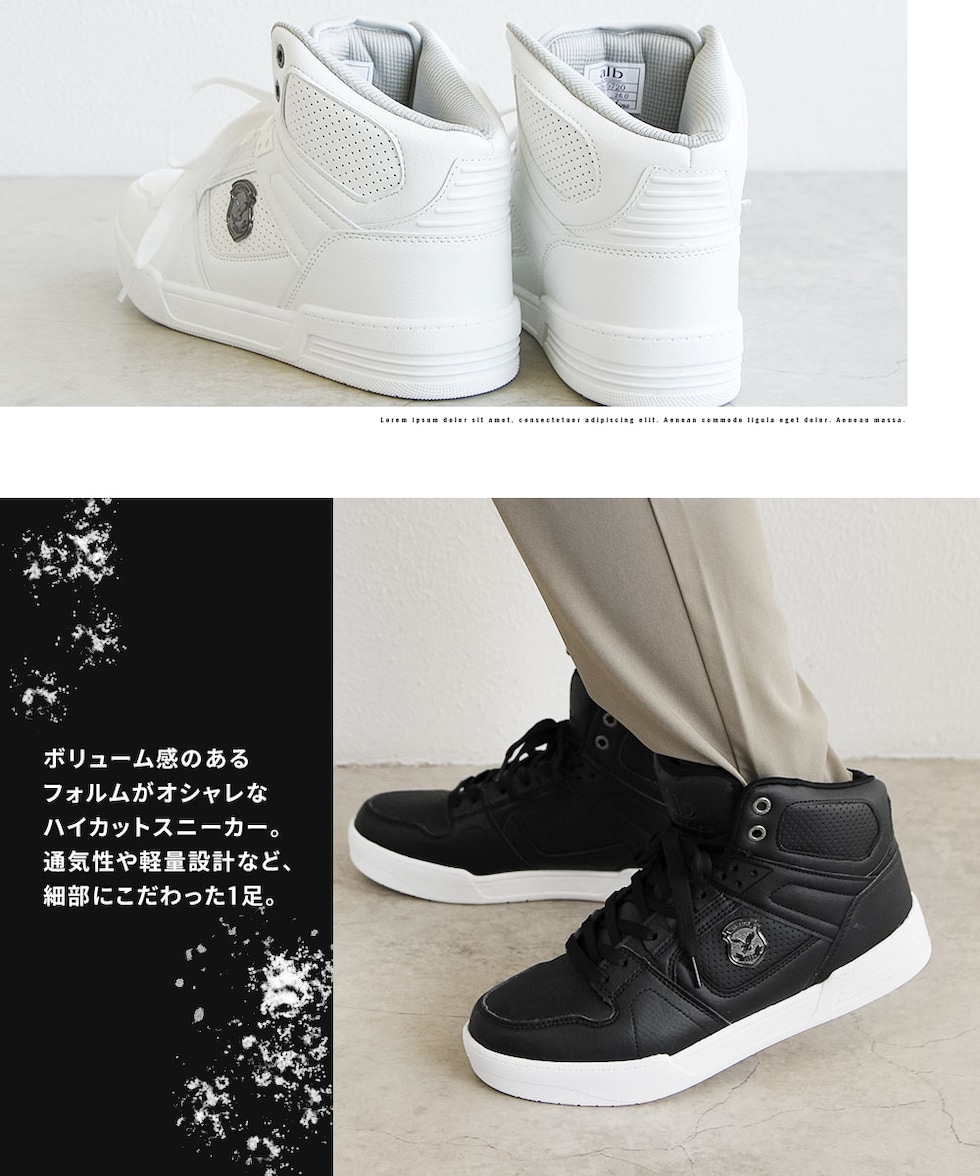 ハイカットスニーカー メンズ 白 黒 軽量 防滑 紐 靴 ブラック ホワイト カジュアル ストリート ダンス 軽い ブランド アルビ alb-5720
