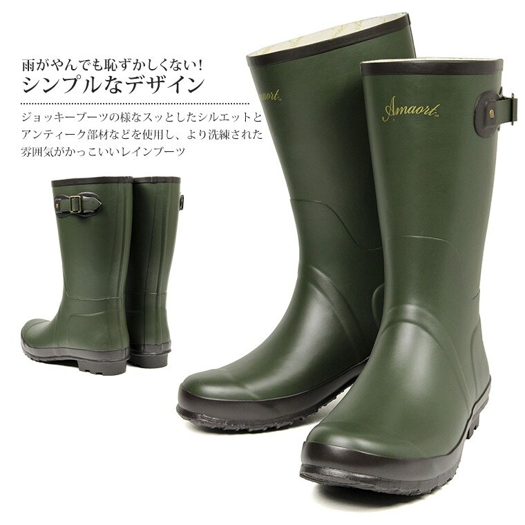 ジョッキーブーツの様なスッとしたシルエットとアンティーク部材などを使用し、より洗練された雰囲気がかっこいいレインブーツ