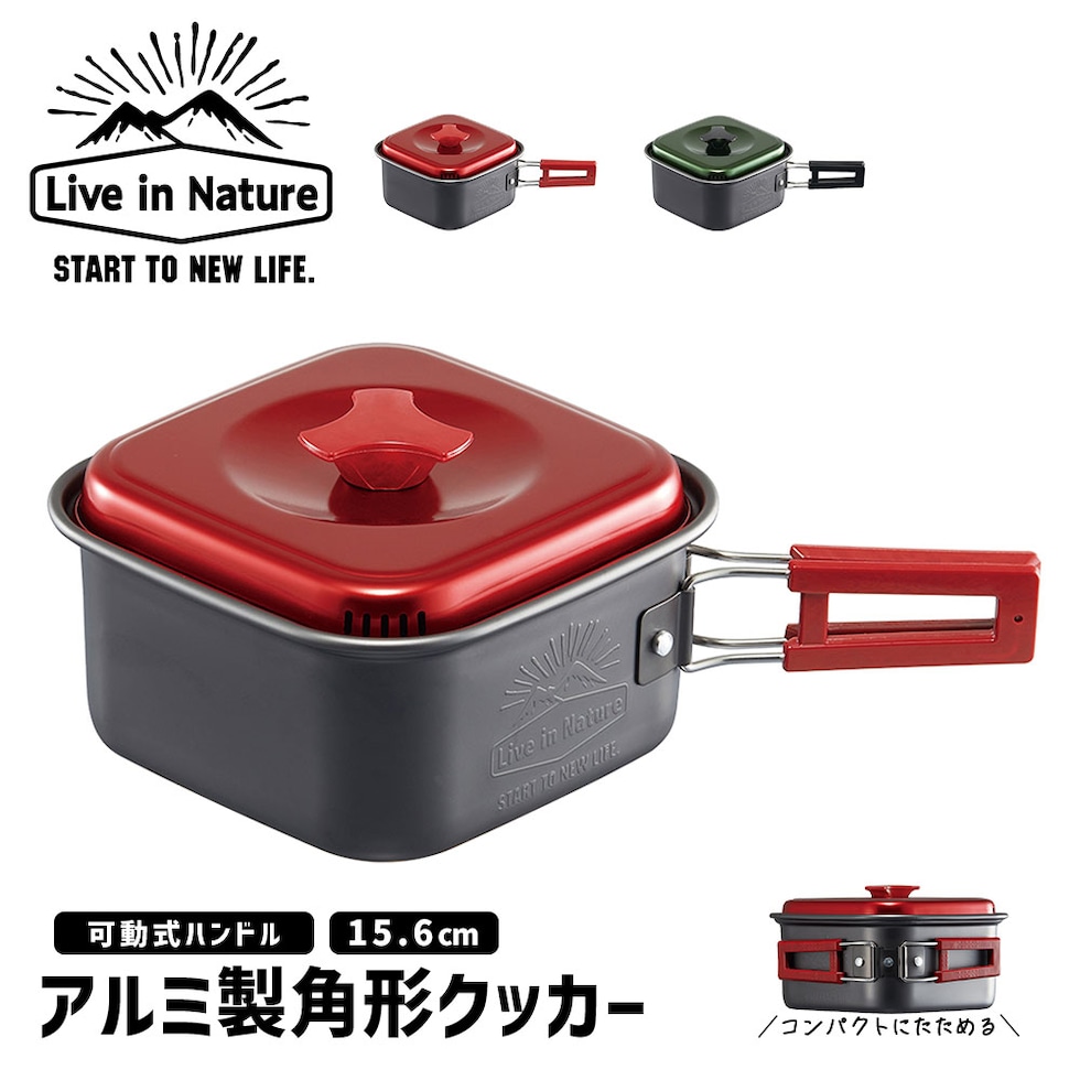 ラーメン鍋 1.2L キャンプ 片手鍋 目盛り付き 四角 アウトドア キャンプ ラーメンクッカー 湯切り穴付き メスティン アルミ 角形 アルミ製 袋麺 インスタントラーメン クッカー 調理器具 ソロキャンプ グリーン レッド 1200ml 折り畳み コンパクト ANC1