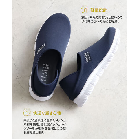 柔らかく通気性に優れたメッシュ素材を使用しストレスフリーで快適な履き心地。
