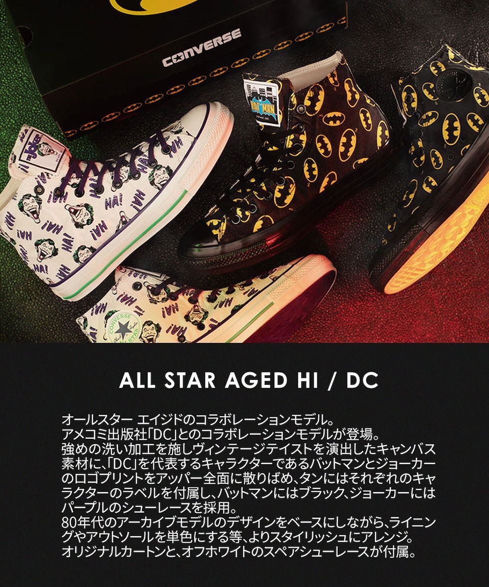 コンバース DCコミックス オールスター エイジド ハイ バットマン ジョーカー コラボ ハイカット 靴 ブラック ホワイト CONVERSE