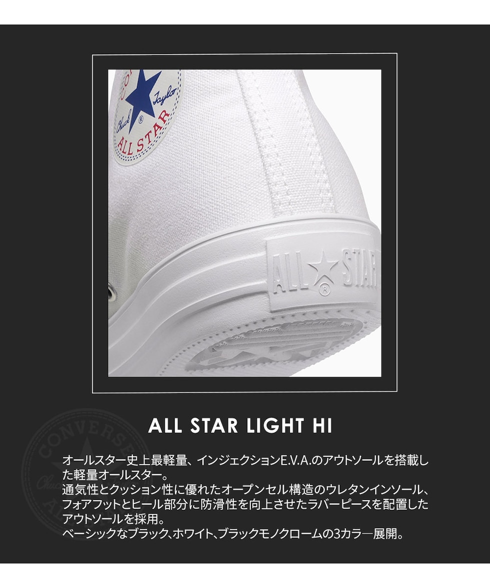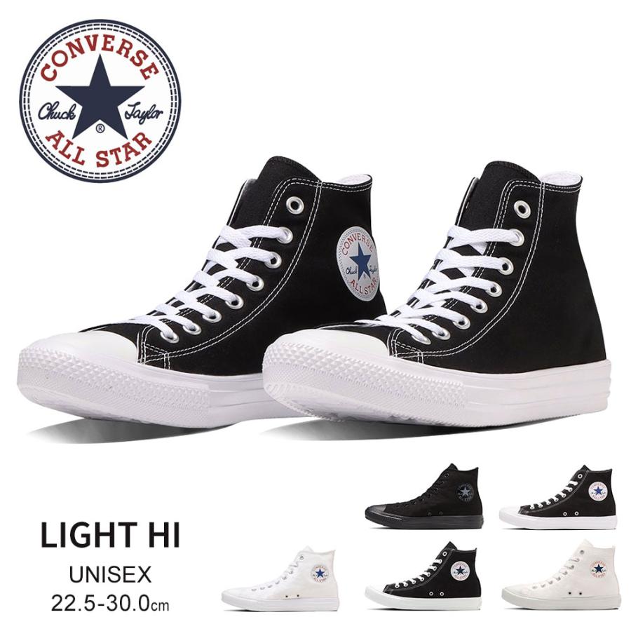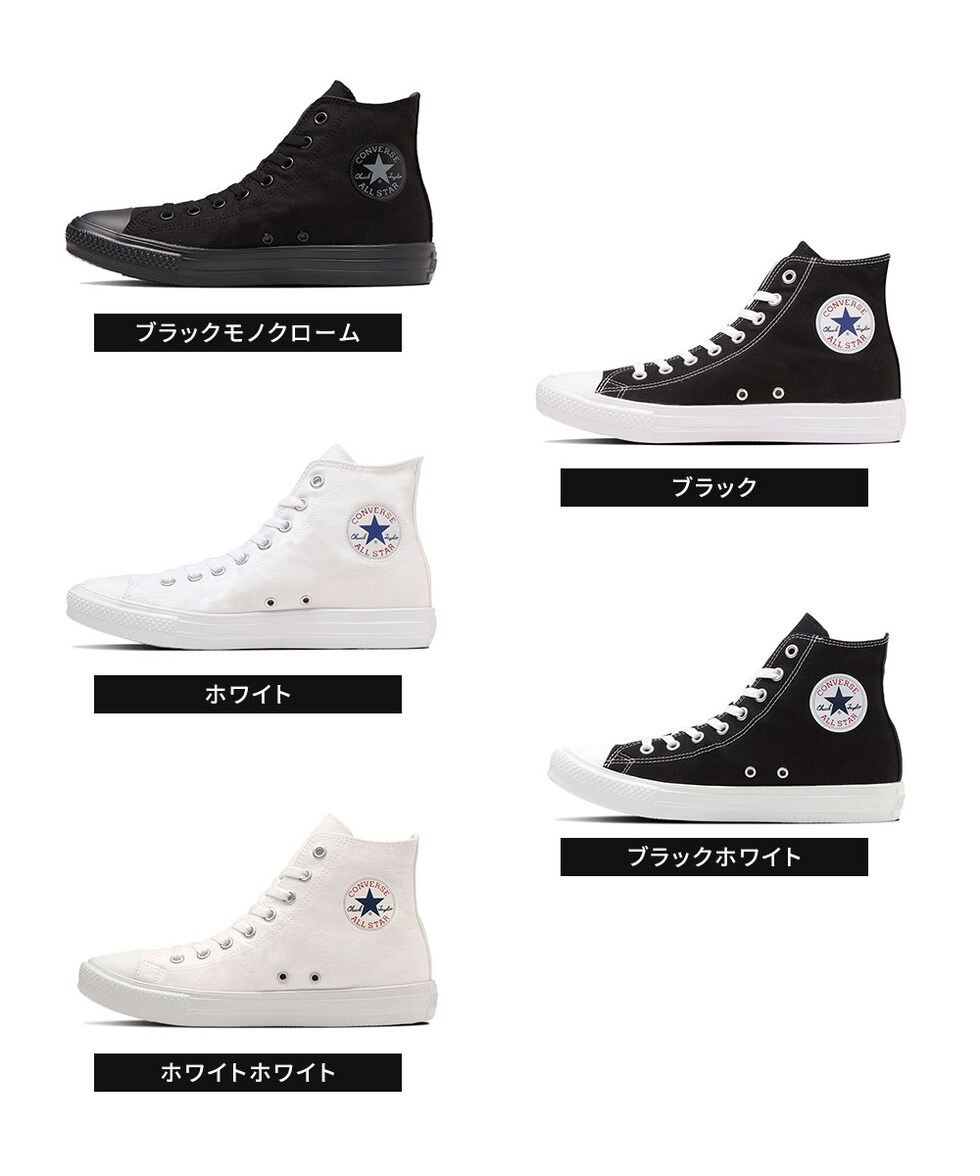 コンバース オールスター ライト ハイカットスニーカー 黒 キャンバスシューズ 超軽量 EVAソール 王道 カジュアル メンズ レディース ジュニア 男女兼用 ブラック モノクローム ホワイト 白 converse ALL STAR LIGHT HI