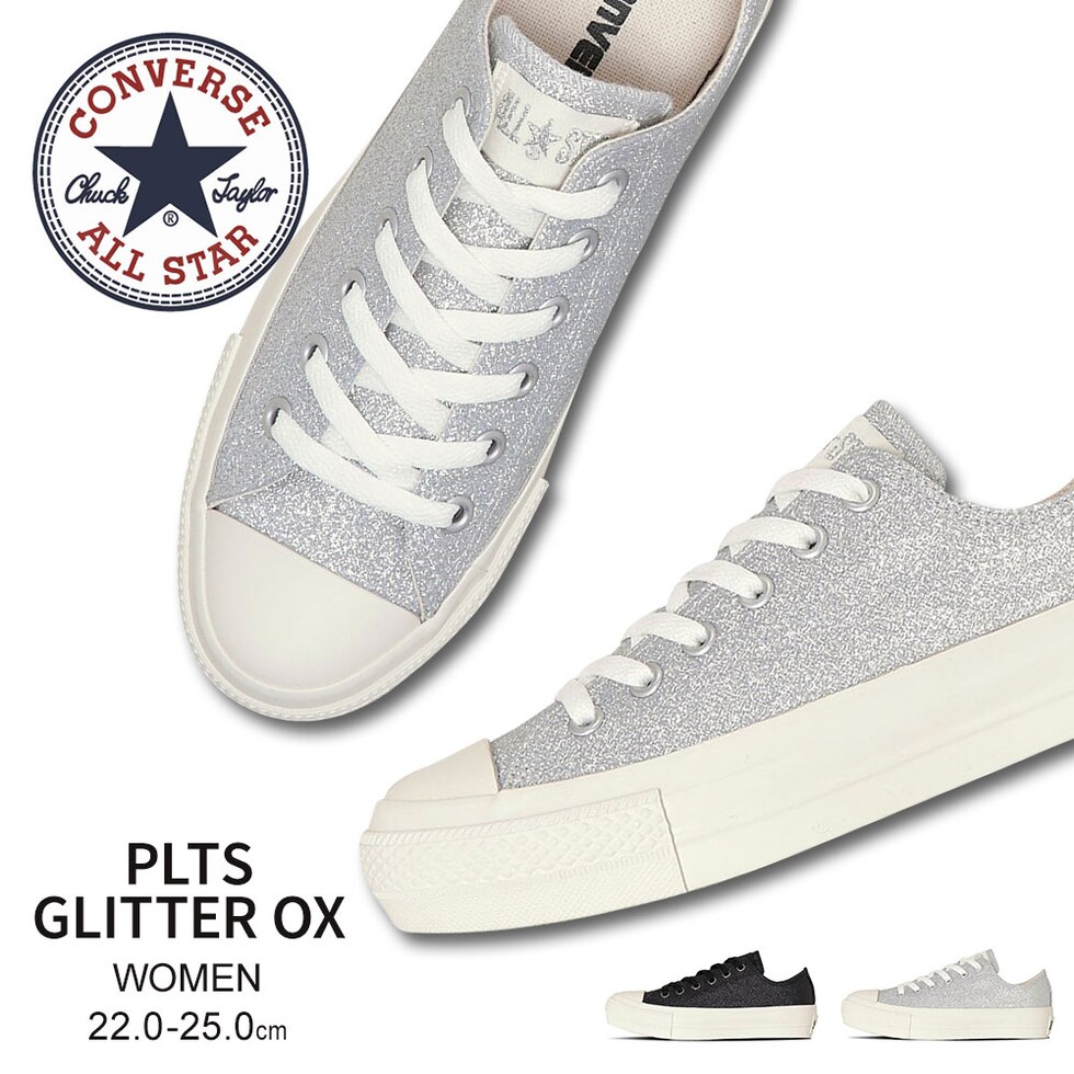 コンバース オールスター 厚底 レディース ローカット グリッター ブラック 黒 シルバー PLTS GLITTER OX converse