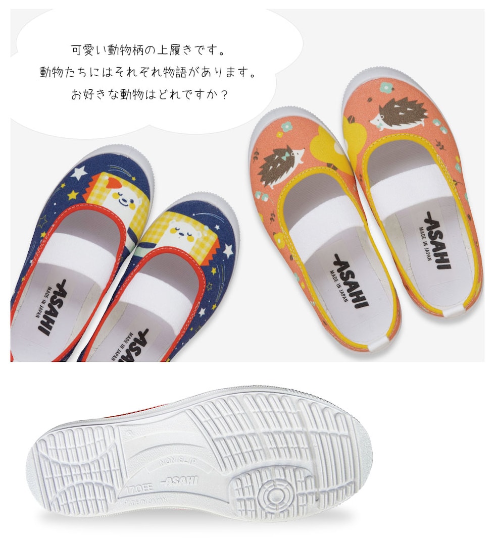 上履き 子供 キャラクター キッズ 子供靴 上靴 女の子 男の子 幼稚園 保育園 小学生 学校 靴 屋内 スクールシューズ うわぐつ ジュニア シューズ 履きやすい 防滑 歩きやすい スリッポンシューズ 日本製 シロクマ キツネ ハリネズミ 白熊 狐 かわいい S02