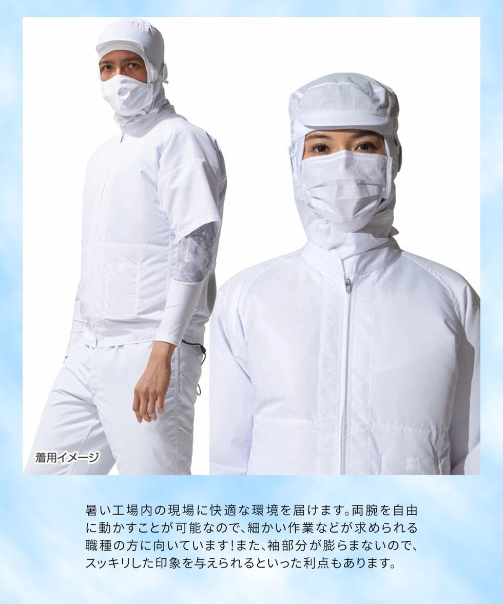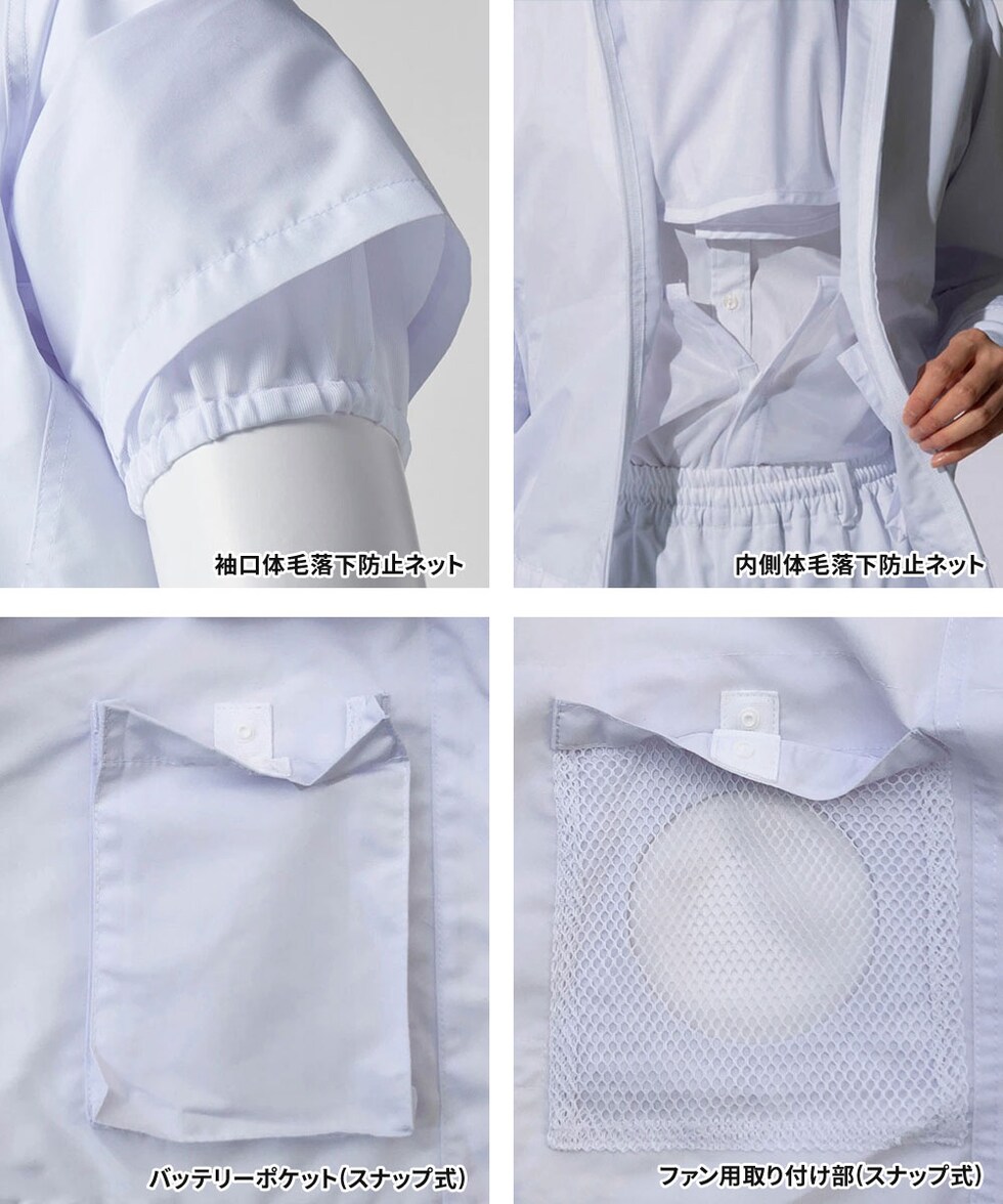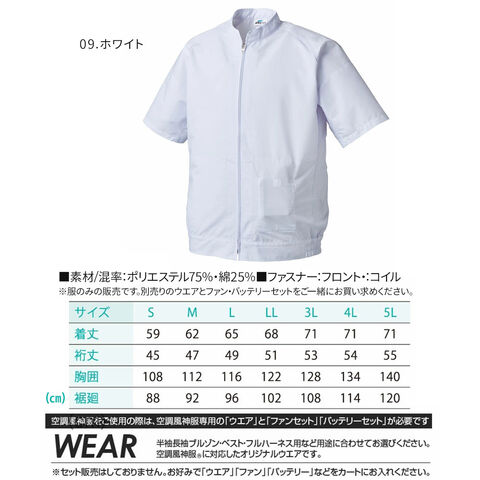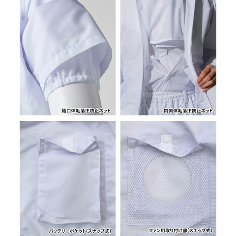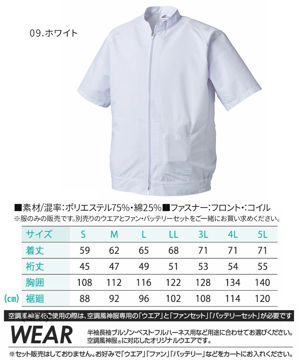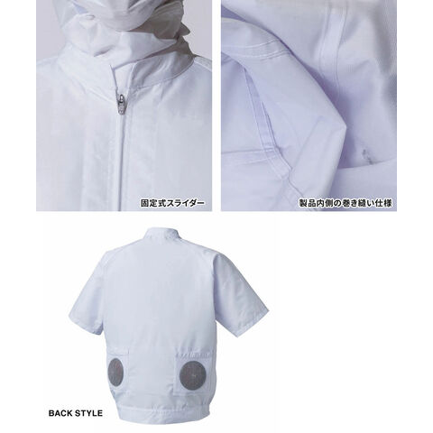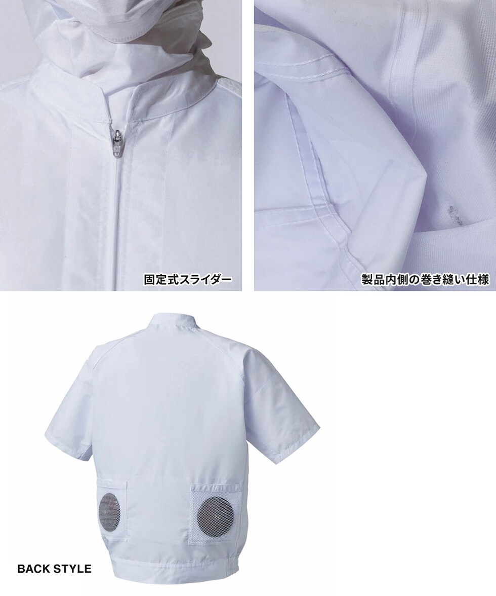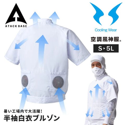 アタックベース 半袖白衣ブルゾン 衛生 空調風神服 半袖 作業着 003 熱中症対策 大きいサイズ メンズ 男女兼用 ※服のみ/ファン/バッテリー別売