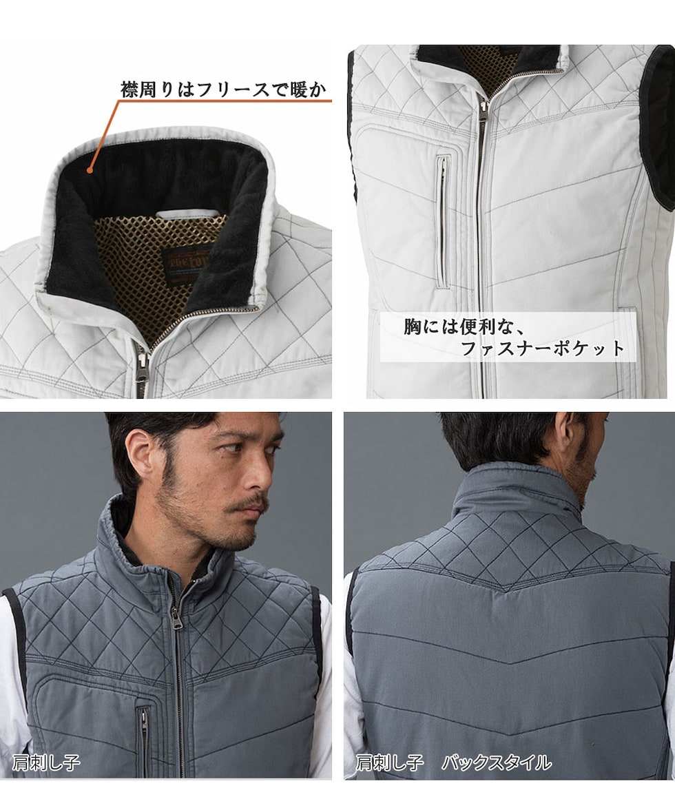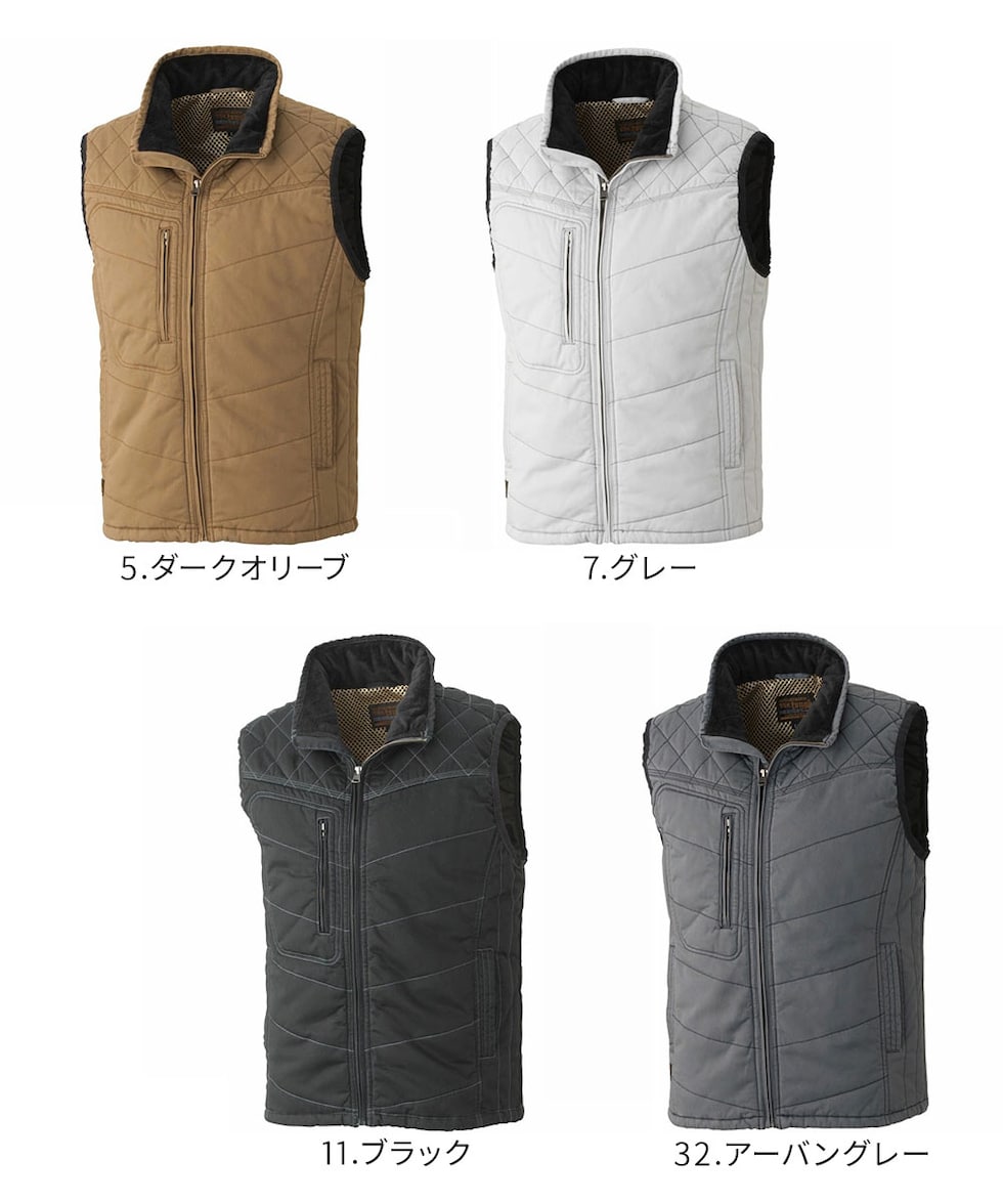 アタックベース 防寒着 作業服 ベスト メンズ 秋冬 胸ファスナーポケット 中綿黒 ブラック グレー オリーブ 5L 大きいサイズ 01300