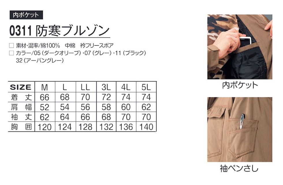 4L: 胸囲 140 / 肩幅 62 / 袖丈 72 / 着丈 72