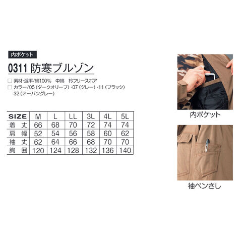 アタックベース 防寒着 メンズ 作業着 大きいサイズ 綿100% 中綿 ジャンパー ジャケット 冬 5L ブルゾン フリース ボア ブラック グレー 黒 0311