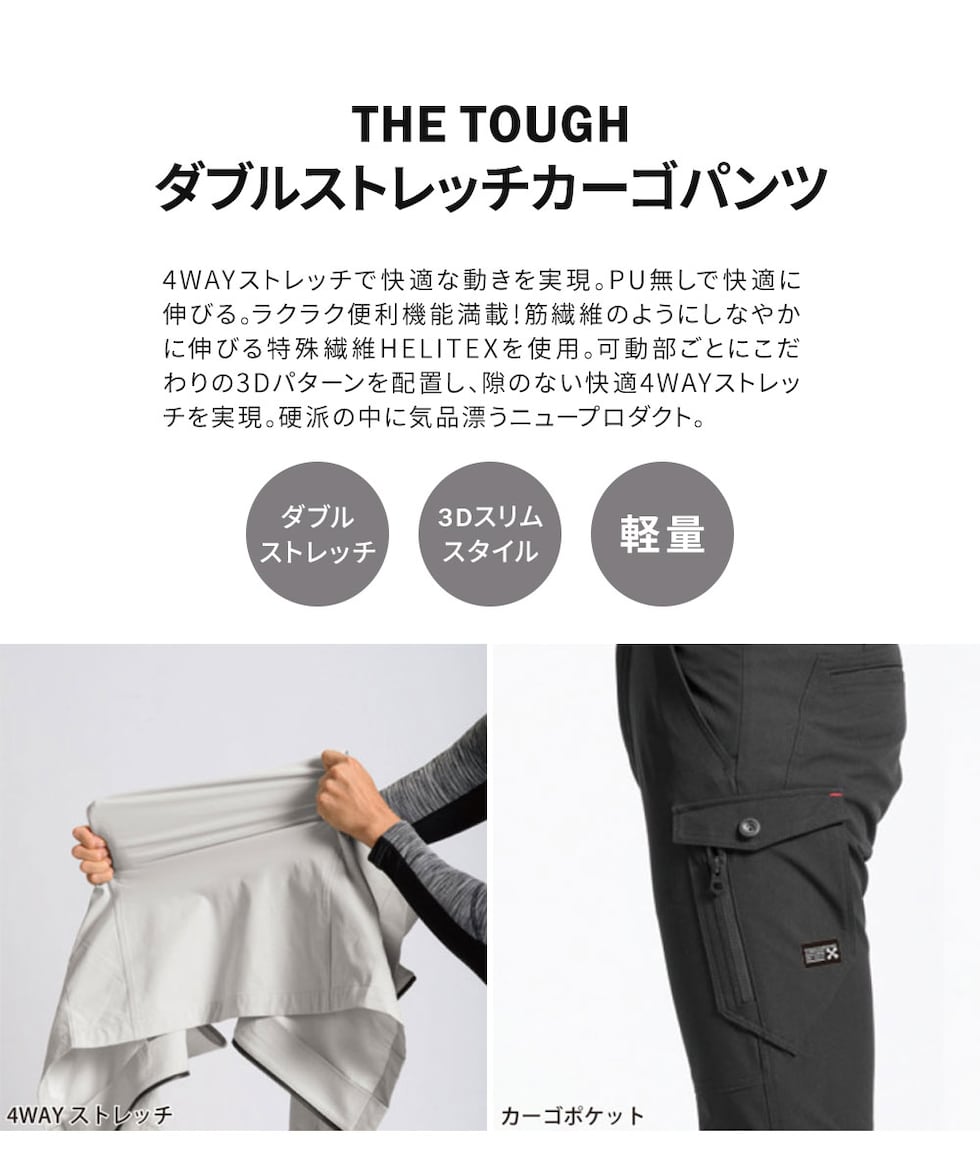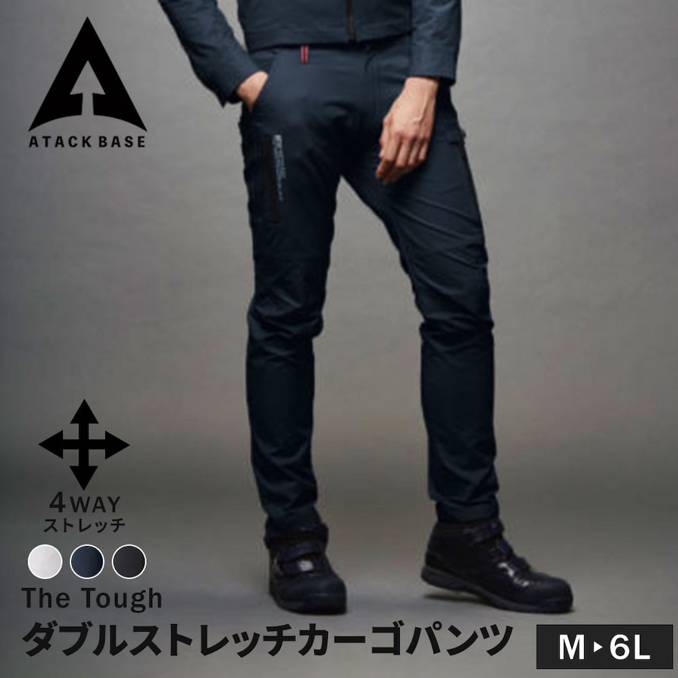 アタックベース 作業ズボン The tough ダブルストレッチカーゴパンツ S~6L 大きいサイズ 軽量 作業着 作業服 パンツ ボトムス 0371