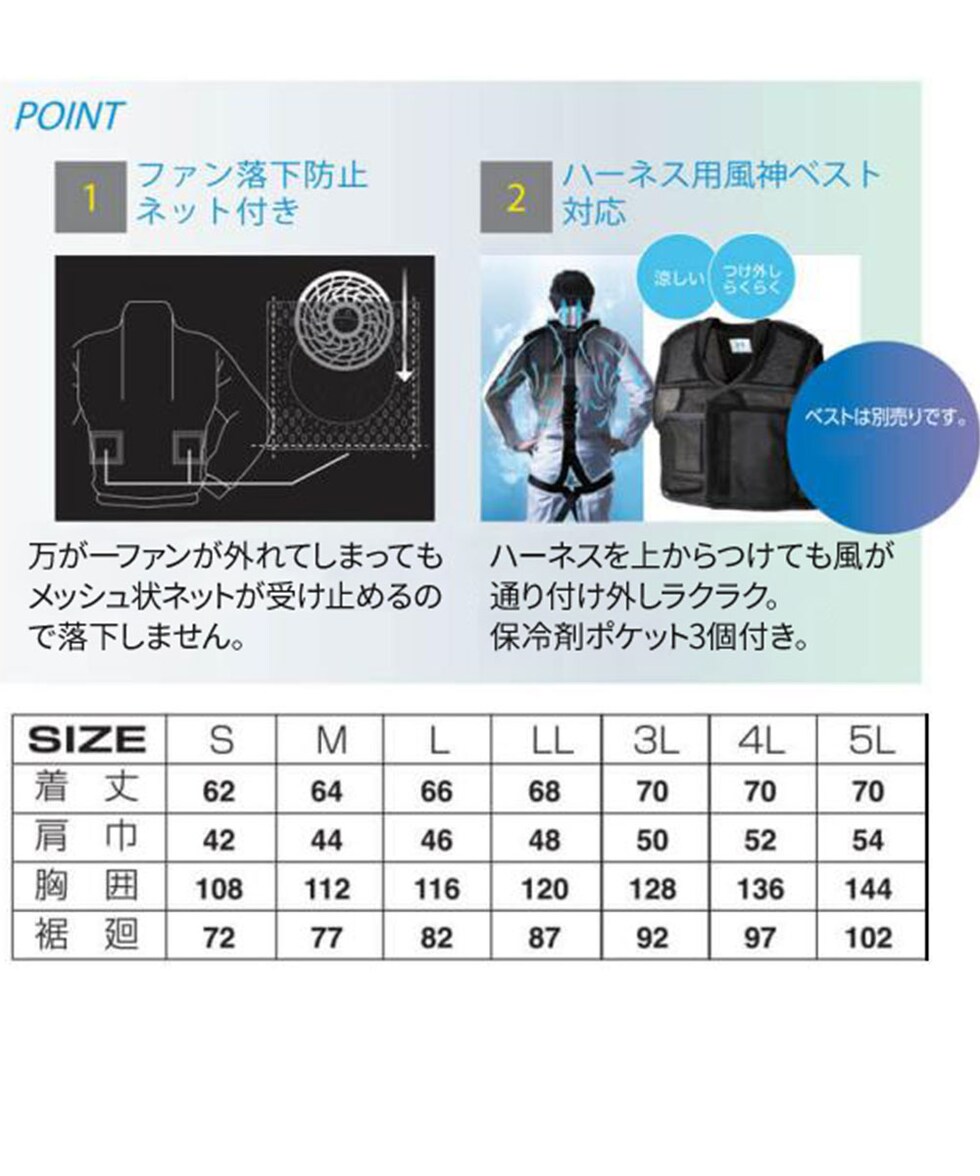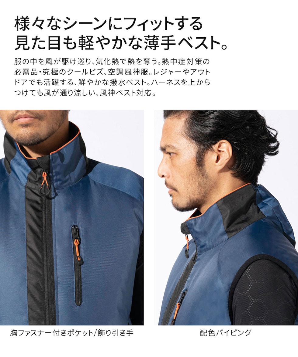 ハーネスを上からつけても風が通り涼しい、風神ベスト対応。