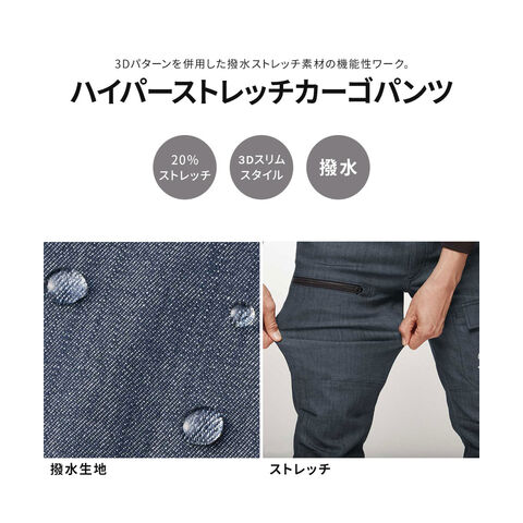 アタックベース 作業ズボン 作業着 作業服 ハイパーストレッチカーゴパンツ S~6L 撥水 スリムスタイル ノータック パンツ ボトムス 青 0571