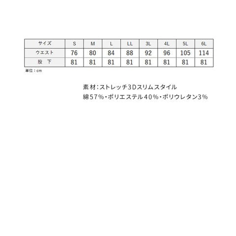 6L⇒ウエスト114cm、股下81cm