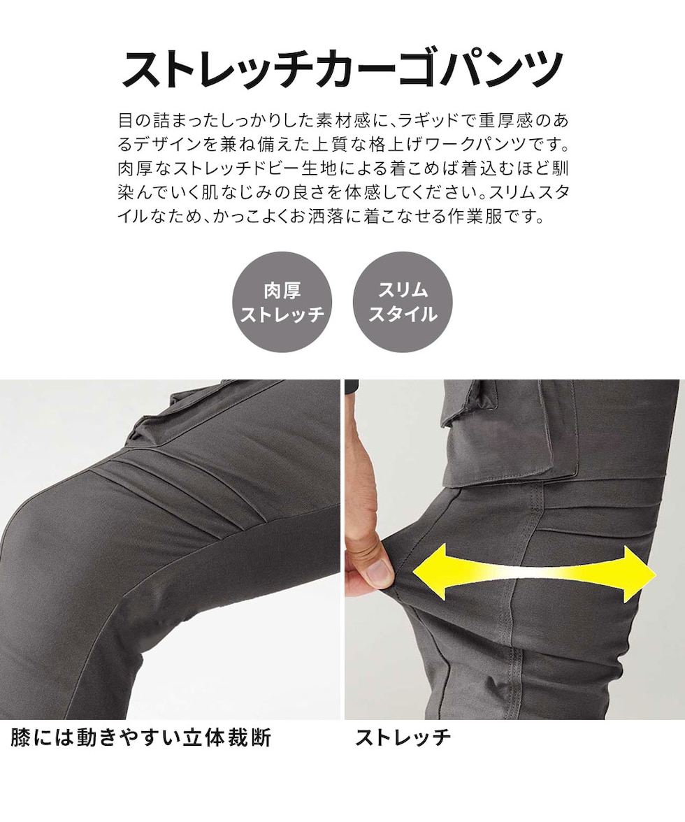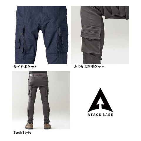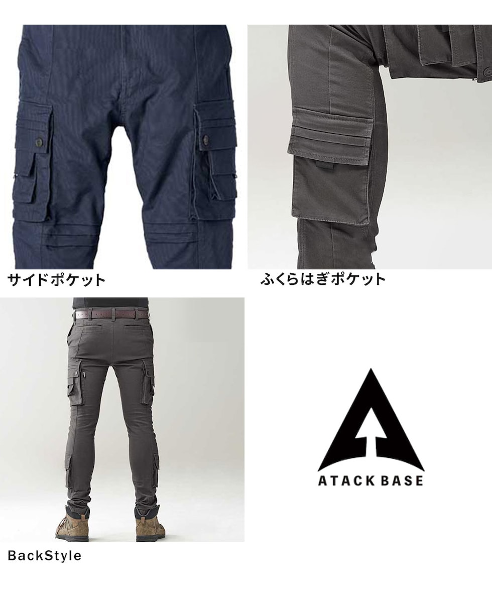アタックベース カーゴパンツ 作業ズボン 作業着 作業服 秋冬 パンツ メンズ ストレッチカーゴパンツ スリムスタイル ノータック ボトムス 0771