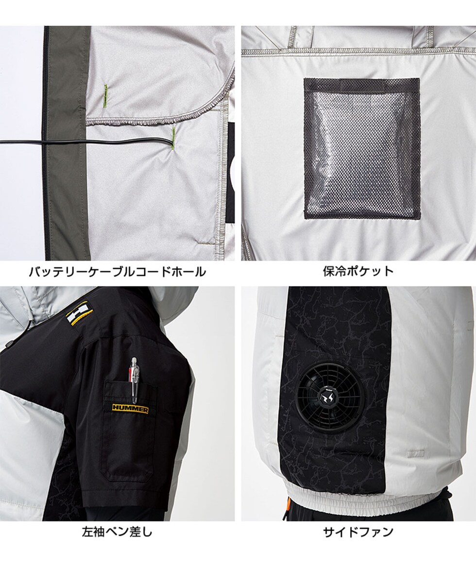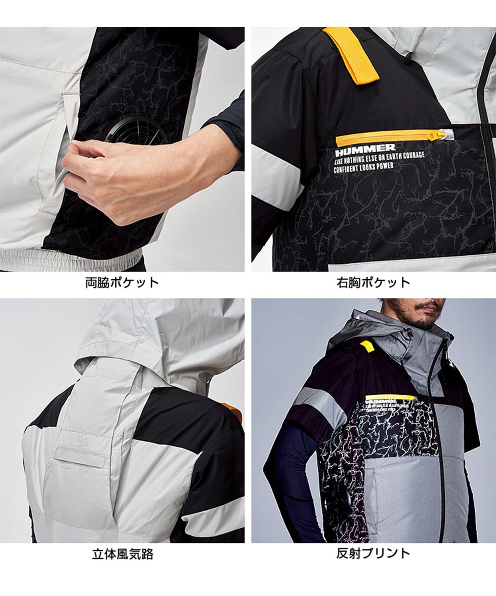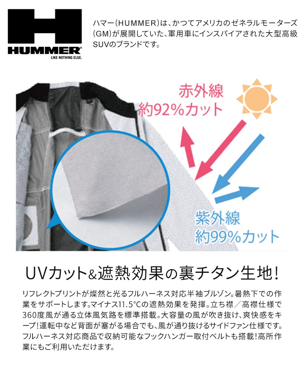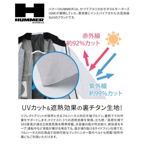 HUMMER ハマー 空調風神服 作業着ト EFウェア チタンフード半袖ブルゾン ファン対応ウェア 撥水 UVカット 遮熱 涼しい 夏 アタックベース