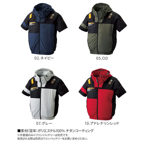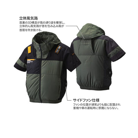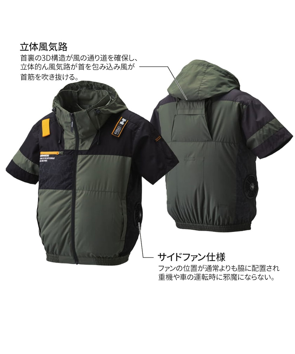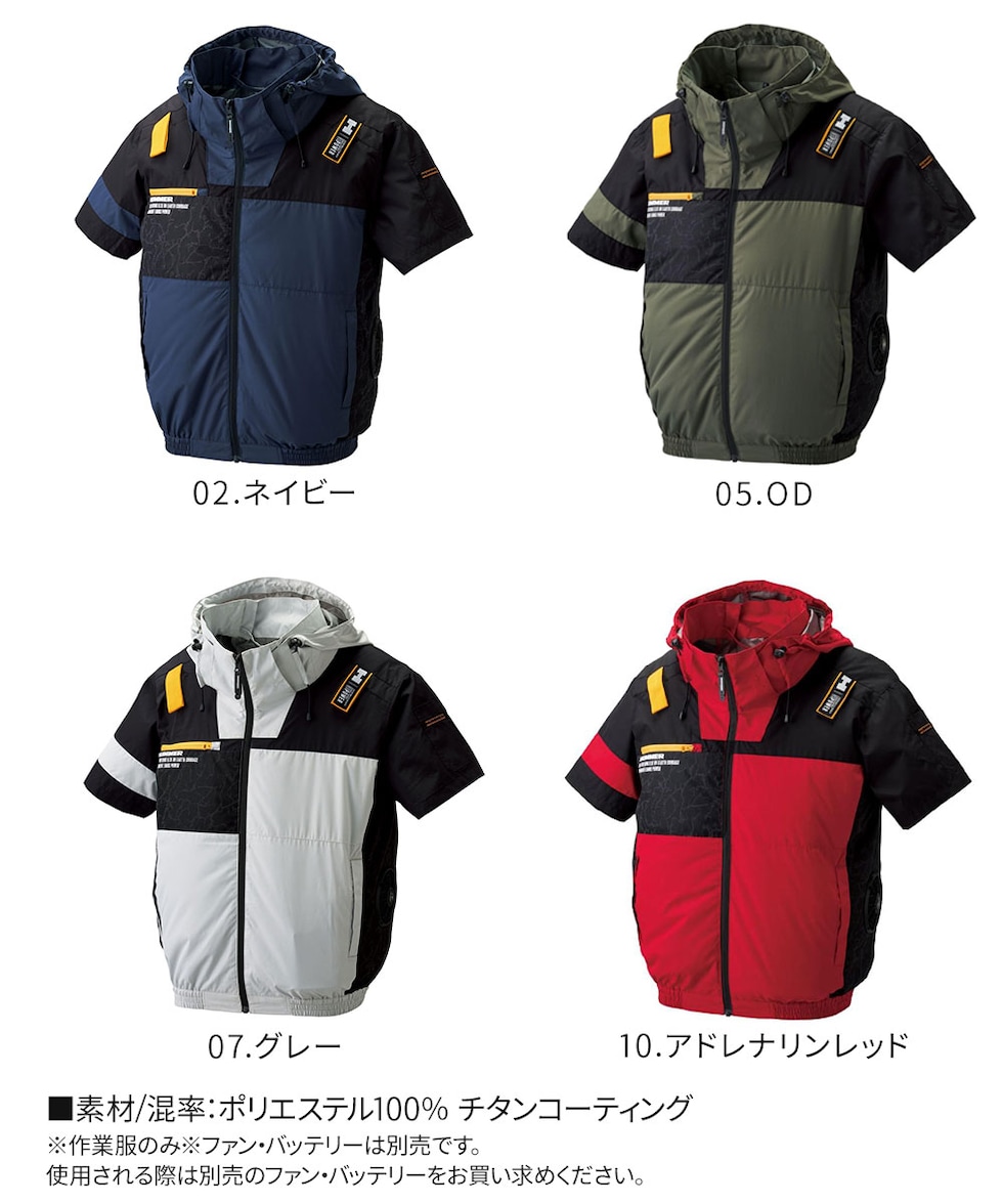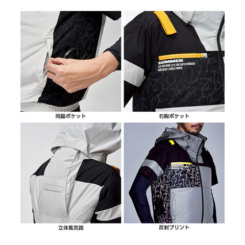 HUMMER ハマー 空調風神服 作業着ト EFウェア チタンフード半袖ブルゾン ファン対応ウェア 撥水 UVカット 遮熱 涼しい 夏 アタックベース