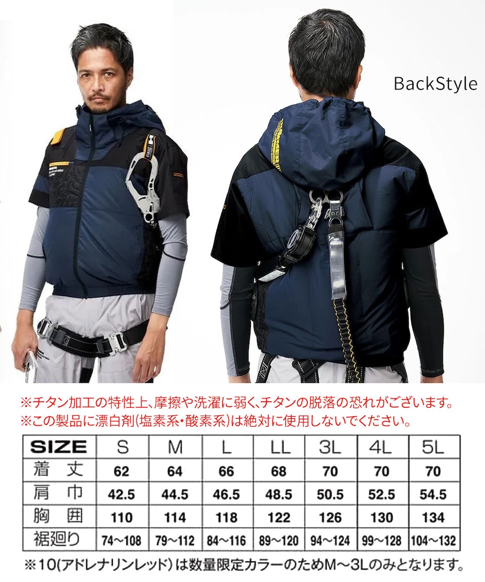 UVカット&遮熱の裏チタン加工生地を使用し、暑熱下での作業をサポートします。