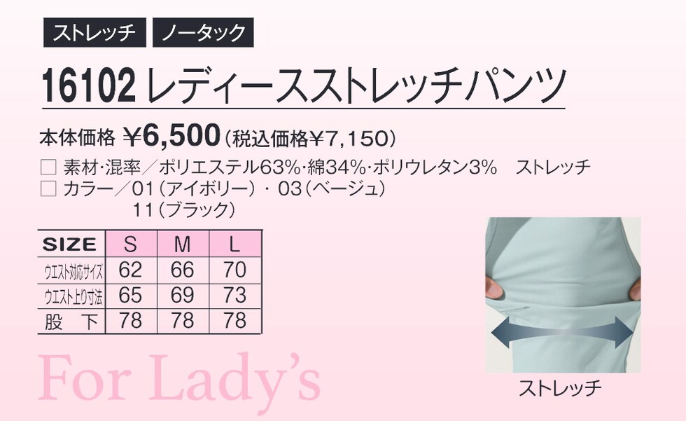 アタックベース 作業服 作業着 ズボン ストレッチ 作業ズボン レディース 黒 パンツ ストレッチパンツ ワークパンツ ベージュ アイボリー ボトムス 16102