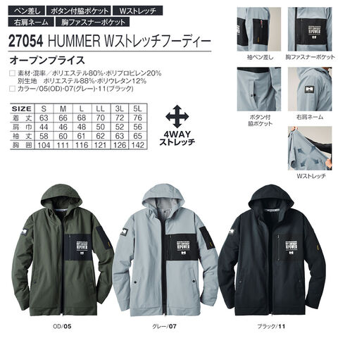27054 HUMMER Wストレッチフーディー