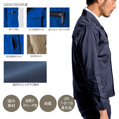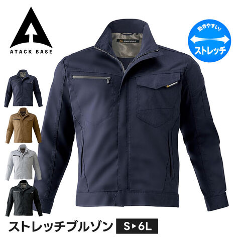 アタックベース 作業服 作業着 ジャンパー ジャケット メンズ 大きいサイズ 秋冬 ブルゾン ストレッチ 右胸ファスナー ペン差し 制電 国内素材 33054