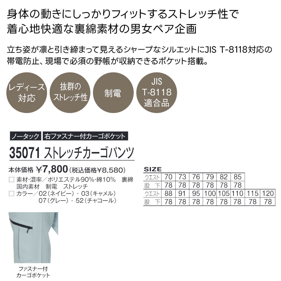 35071 ストレッチカーゴパンツ(ノータック・右ファスナー付カーゴポケット)