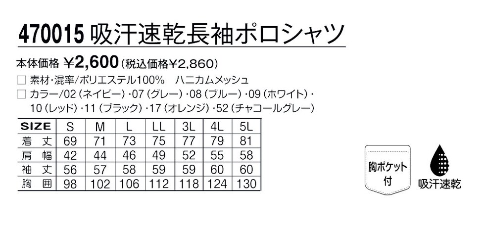 5L: 着丈 81 / 肩幅 58 / 袖丈 60 / 胸囲 130