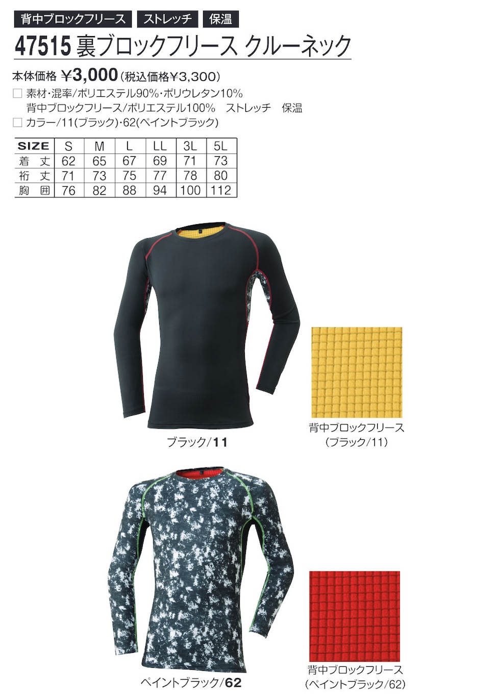背中ブロックフリース:ポリエステル100%