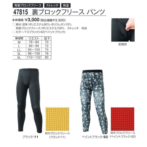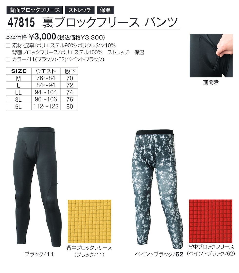 アタックベース 作業服 冬 インナー パンツ メンズ 暖かい 防寒インナー タイツ 裏起毛 大きいサイズ レギンス 暖かい 下着 冬用 ストレッチ 47815