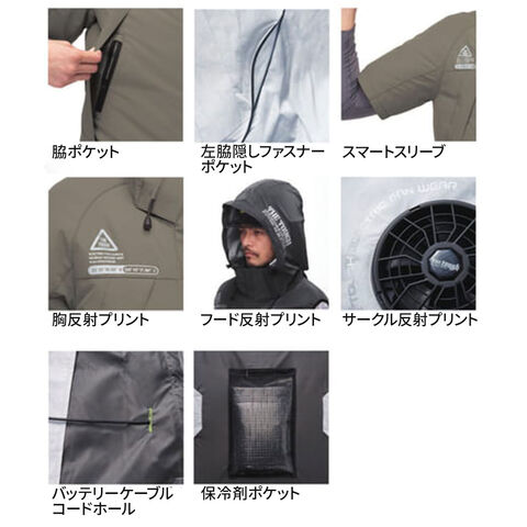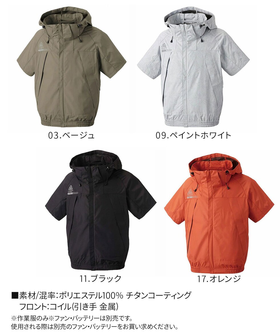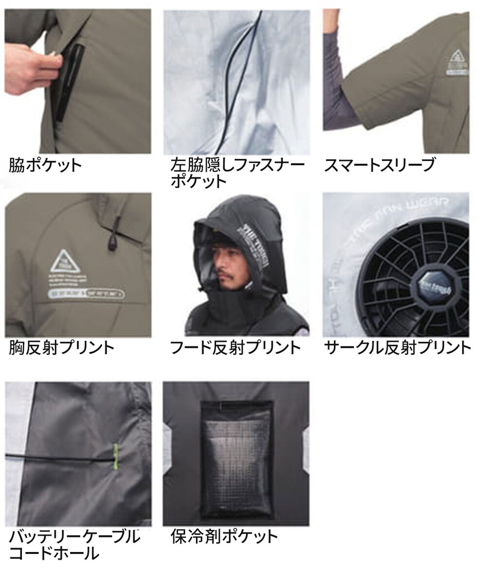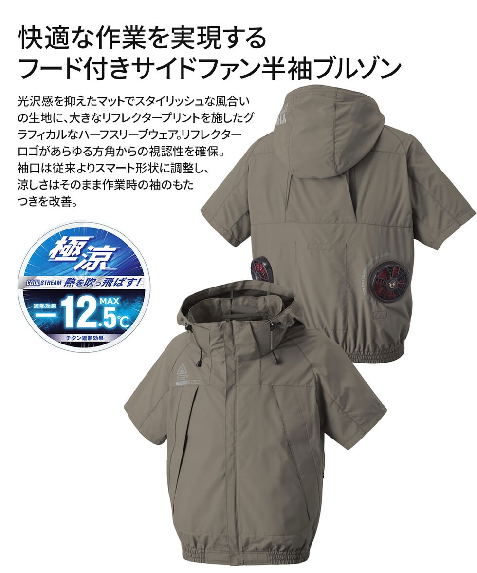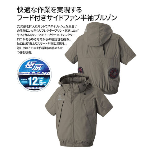 空調風神服 EFウェア ファン対応 チタンフード半袖ブルゾン ジャケット 作業着 ブルゾン フード付き 撥水 遮熱 アタックベース The tough
