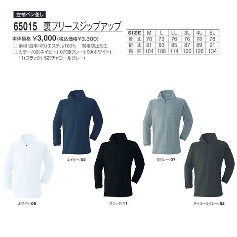 65015 裏フリースジップアップ(左袖ペン差し付き・制電加工)