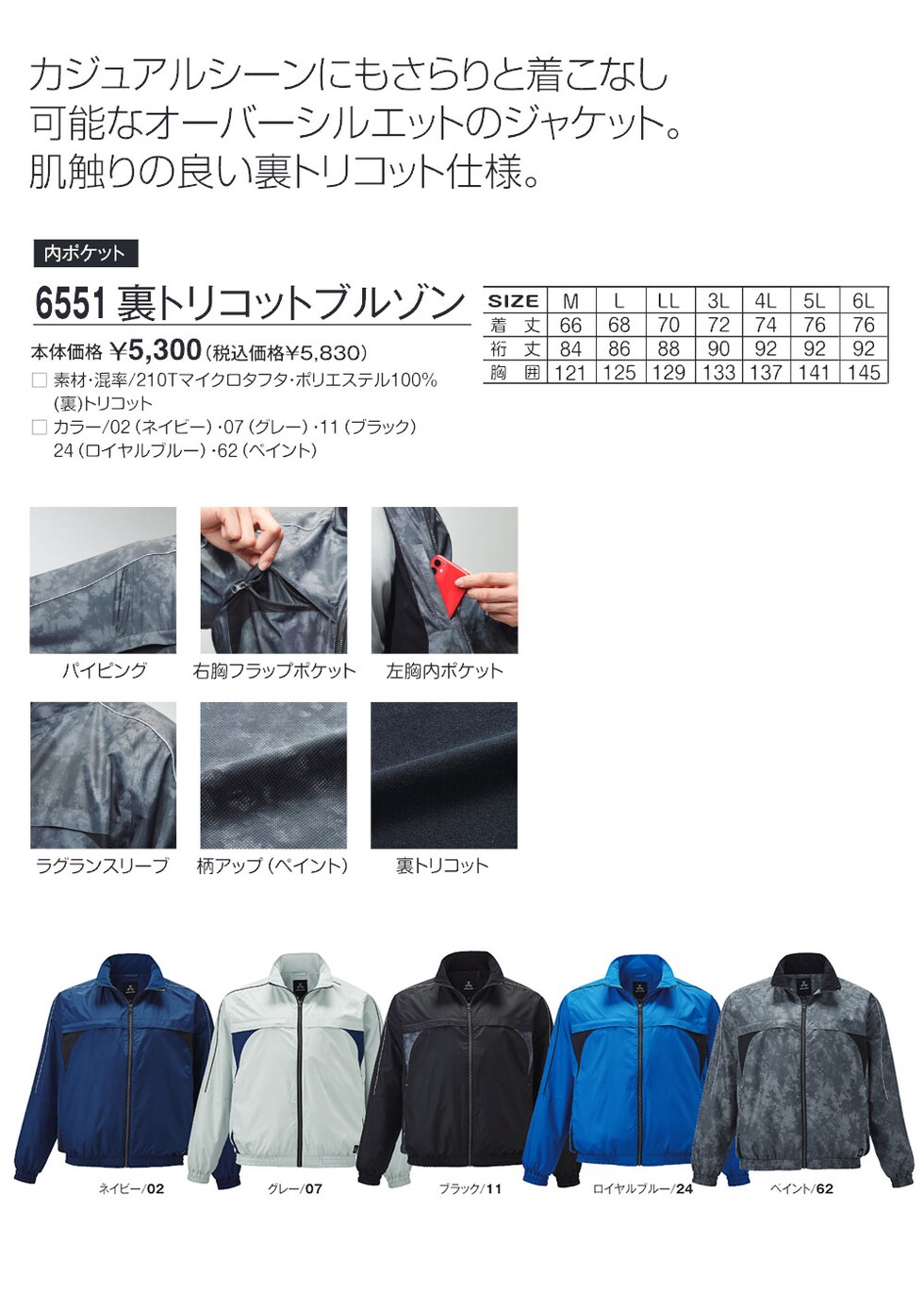 5L: 着丈 76 / 裄丈 92 / 胸囲 141